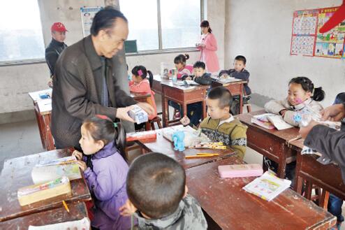 石建華在各所鄉(xiāng)村學(xué)校發(fā)放助學(xué)物資