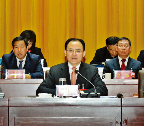 市委書(shū)記李俊明在市四屆人大三次會(huì)議閉幕大會(huì)上作重要講話。范濤 攝