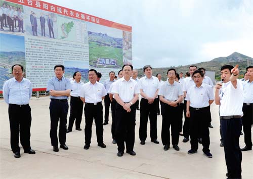 圖為省人大常委會副主任、市委書記李俊明帶領(lǐng)觀摩人員在五臺縣特色農(nóng)業(yè)產(chǎn)業(yè)扶貧陽白現(xiàn)代農(nóng)業(yè)循環(huán)園區(qū)聽取情況介紹。本報記者 劉紀(jì)森 攝