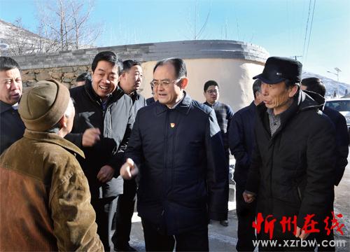 圖為省人大常委會(huì)副主任、市委書記李俊明在繁峙縣巖頭鄉(xiāng)茶鋪村向村民了解脫貧情況。本報(bào)記者劉紀(jì)森攝