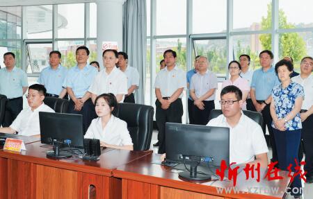 圖為省人大常委會(huì)副主任、市委書(shū)記李俊明和參會(huì)人員在保德縣光伏扶貧電站運(yùn)維管理中心觀摩。本報(bào)記者宮愛(ài)文攝