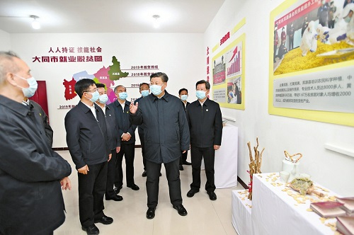 5月11日下午,習(xí)近平走進云州區(qū)西坪鎮(zhèn)坊城新村技能培訓(xùn)服務(wù)站,了解新村易地扶貧搬遷情況。 新華社發(fā)