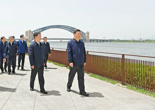 5月12日中午,習(xí)近平在汾河太原城區(qū)晉陽橋段考察汾河水治理及沿岸生態(tài)保護、城市環(huán)境建設(shè)等情況。