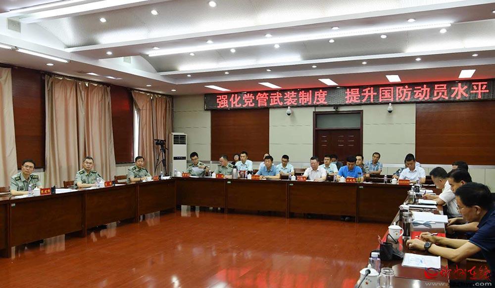 曲君傳達(dá)省委議軍會(huì)議精神,匯報(bào)國(guó)防動(dòng)員和后備力量建設(shè)情況。劉紀(jì)森 攝