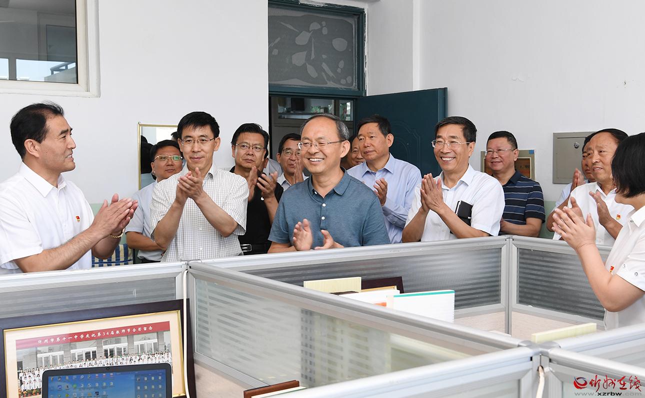 近年來(lái),忻州一中優(yōu)生培養(yǎng)取得階段性成果,綜合辦學(xué)水平大幅提升,高考一本達(dá)線率連年在85%以上,二本達(dá)線率逼近百分之百,教育質(zhì)量享譽(yù)三晉,教學(xué)成績(jī)位列全省第一方陣,這些都離不開該校全體教師的辛勤付出。鄭連生一行詳細(xì)察看了校園環(huán)境,并到數(shù)學(xué)教研室與教師進(jìn)行交流,聽取教育教學(xué)意見(jiàn),詢問(wèn)工作生活上的困難。鄭連生指出,百年大計(jì),教育為本;教育大計(jì),教師為本,教師是教育事業(yè)發(fā)展的基礎(chǔ),要高度重視并切實(shí)抓好教師隊(duì)伍建設(shè),不斷提升教師的教學(xué)水平,為教師的工作和生活創(chuàng)造便利條件。各級(jí)各部門要始終堅(jiān)持教育優(yōu)先發(fā)展戰(zhàn)略,加大財(cái)政投入,加強(qiáng)政策支持,全面優(yōu)化教育發(fā)展環(huán)境,推動(dòng)忻州教育水平再上新臺(tái)階,為我市經(jīng)濟(jì)社會(huì)發(fā)展培養(yǎng)更多人才。