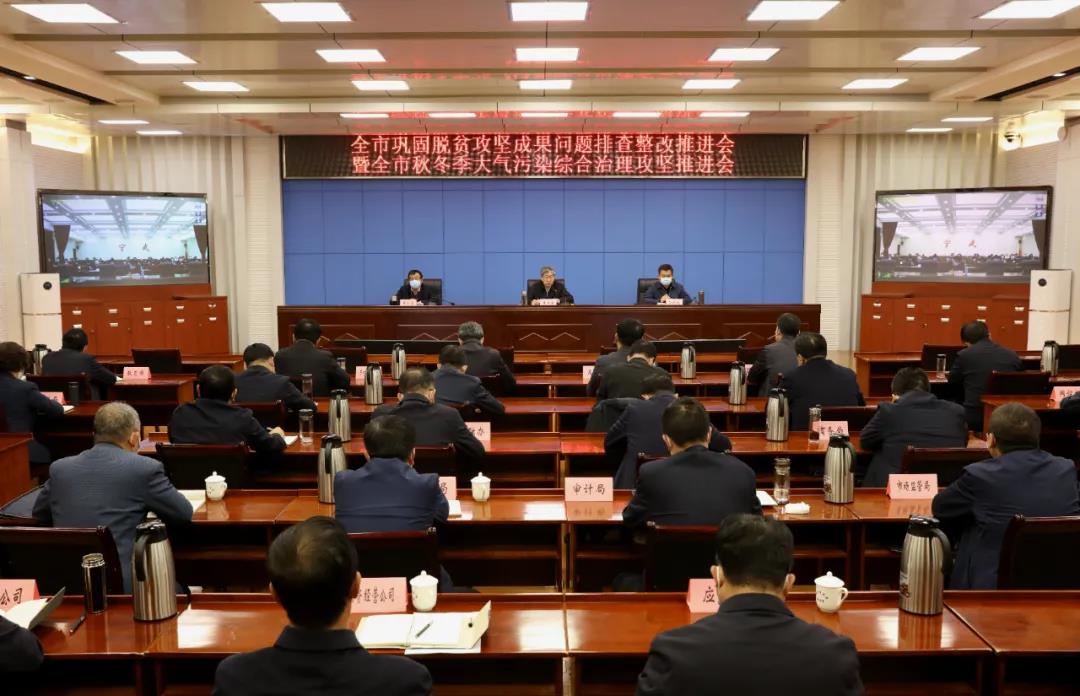 本報(bào)訊 (記者任逢春)11月2日,我市召開(kāi)鞏固脫貧攻堅(jiān)成果問(wèn)題排查整改暨秋冬季大氣污染綜合治理攻堅(jiān)推進(jìn)會(huì),貫徹全省相關(guān)會(huì)議精神,對(duì)我市工作進(jìn)行安排部署。市長(zhǎng)朱曉東主持會(huì)議并講話。副市長(zhǎng)耿鵬鵬,市政府秘書(shū)長(zhǎng)張艮生出席。會(huì)議以視頻形式召開(kāi),各縣(市、區(qū))設(shè)分會(huì)場(chǎng),市直相關(guān)部門主要負(fù)責(zé)人在市主會(huì)場(chǎng)參加。