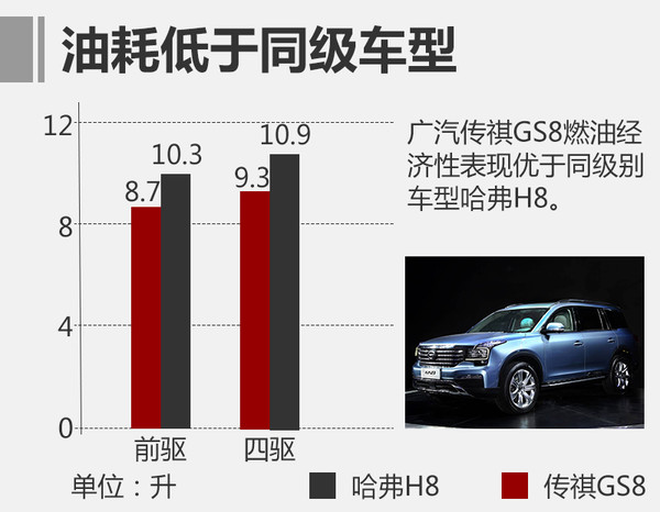 新車定位于中大型SUV,上市后將與哈弗H8等車型處于同一級別。油耗方面,通過與哈弗H8對比后發(fā)現(xiàn),新車兩驅(qū)與四驅(qū)車型在燃油經(jīng)濟(jì)性方面均具備一定優(yōu)勢。