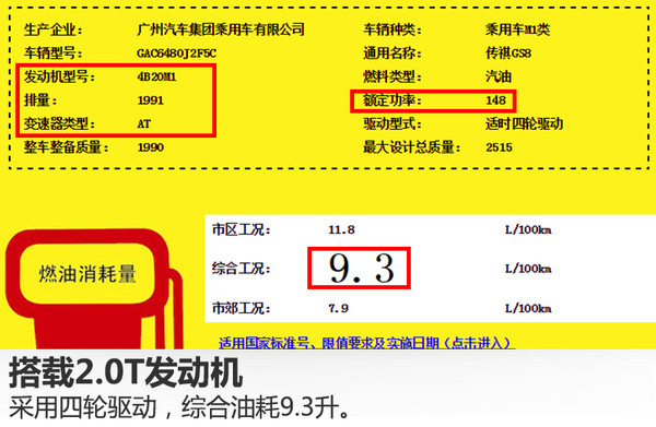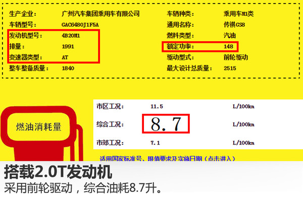 動力方面,從國家工信部公布的信息可知,廣汽傳祺GS8將搭載一臺型號為4B20M1的2.0升直列四缸渦輪增壓發(fā)動機(jī),額定功率148千瓦,匹配6速自動變速箱。百公里綜合油耗分別為:兩驅(qū)車型8.7升,四驅(qū)車型9.3升。