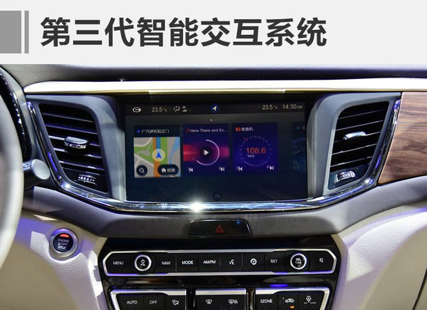 內(nèi)部配置方面,傳祺GS8將搭載品牌最新的第三代智能交互系統(tǒng)。這套系統(tǒng)配備了全新的智能設(shè)備,其中10.1英寸觸摸液晶顯示屏是主要硬件部分。在軟件應(yīng)用中,包括全新的組合儀表盤、智能語音控制、多媒體系統(tǒng)以及應(yīng)用等一系列人機(jī)交互內(nèi)容,這些都能夠與手機(jī)端的APP相互連通。