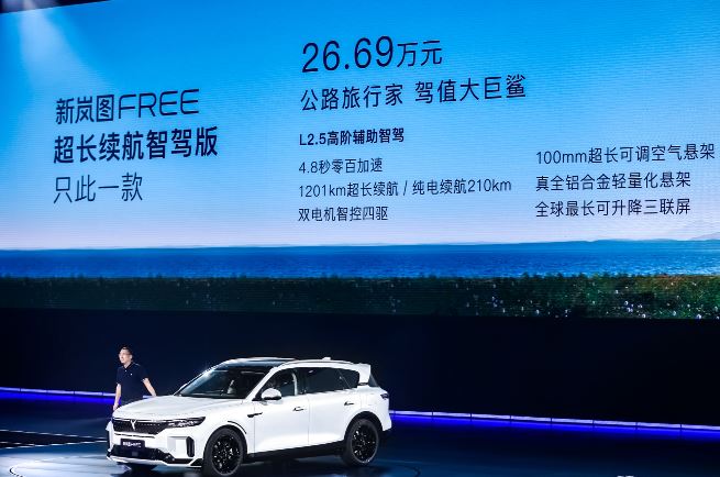8月19日,新嵐圖FREE在2023 VOYAH NIGHT嵐圖用戶之夜正式上市,售價26.69萬元。新嵐圖FREE采用新外觀、新內(nèi)飾、新動總、新智駕,定位“智駕游大五座SUV”,首搭百度Apollo Highway Driving Pro領航輔助智駕;全系標配四驅(qū)系統(tǒng)和空氣懸掛;采用1.5T深度米勒循環(huán)增程器,CLTC綜合續(xù)航里程達到1201km,純電續(xù)航里程210km,是嵐圖FREE車型自上市以來的首次全面煥新升級。