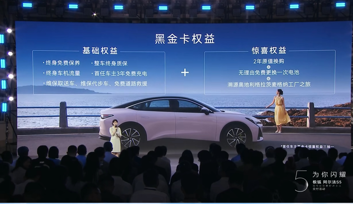 阿爾法S5交付的同時,“三巨頭”還為首批用戶帶來價值不菲的黑金卡權(quán)益,包括終身免費(fèi)保養(yǎng)、首任車主3年免費(fèi)充電、免費(fèi)道路救援,以及2年原值換購、無理由免費(fèi)更換一次電池、溯源奧地利格拉茨麥格納工廠之旅等實(shí)打?qū)嵉暮枚Y,并且此后還將定期抽取幸運(yùn)用戶持續(xù)發(fā)放黑金卡權(quán)益,開創(chuàng)汽車行業(yè)交付價值感的新境界。
