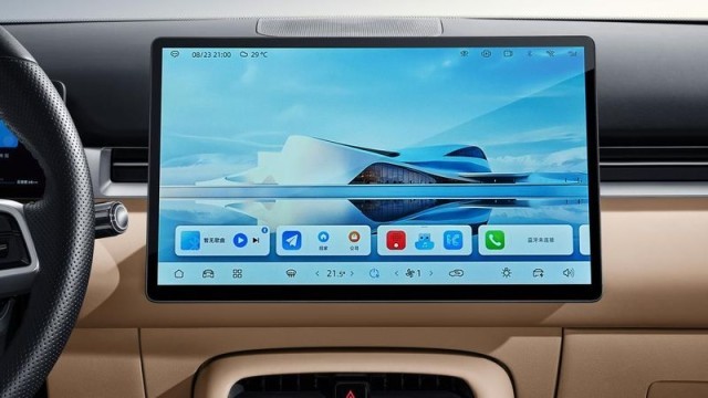 藍(lán)電E5 PLUS搭載HUAWEl HiCar4.0科技智能座艙,15.6英寸大尺寸懸浮式中控屏幕整體UI設(shè)計(jì)十分用心,下方Dock欄設(shè)計(jì)可根據(jù)需求,隨心更換,使用起來(lái)也是絲般順滑。并且,還提供了愛(ài)奇藝、喜馬拉雅等第三方軟件。