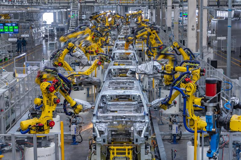 (資料圖片)在位于重慶兩江新區(qū)的賽力斯超級工廠,焊裝車間生產(chǎn)線上的機器人在精準執(zhí)行作業(yè)指令。新華社記者 黃偉 攝