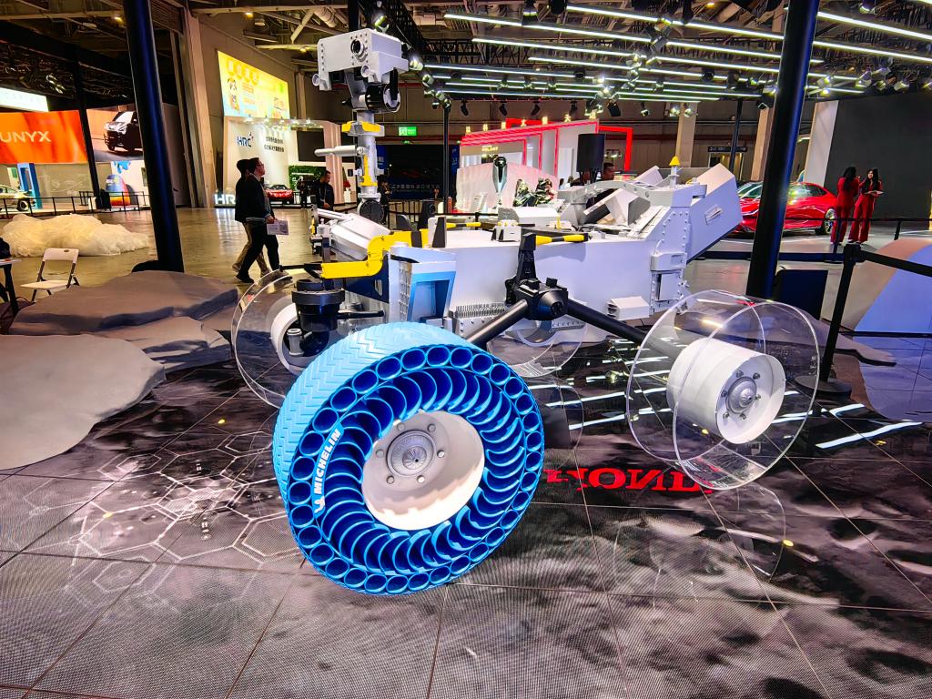 進(jìn)博會(huì)期間,米其林將亞洲首發(fā)一款月球探測(cè)車專用的免充氣輪胎。新華社記者周蕊 攝