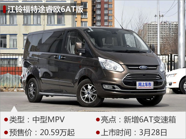 途睿歐是江鈴福特旗下一款MPV車型,目前全系均為手動擋車型,其自動檔車型將于3月28日上市。外觀方面,新車前臉使用了六邊形進(jìn)氣格柵,側(cè)面配有雙五輻式輪轂,下部則搭載了金屬踏板。車內(nèi)配有四輻式多功能方向盤、7英寸中控液晶顯示屏以及自動恒溫空調(diào)系統(tǒng)等舒適實用配置。此外新車還配備了博世ESP系統(tǒng)、HSA坡道輔助系統(tǒng)以及倒車影像等科技安全配置。途睿歐采用了福特2.0T EcoBoost渦輪增壓發(fā)動機(jī),最大功率為149kW,峰值扭矩達(dá)到了300Nm。