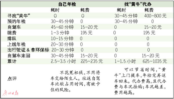 “老車”上線年檢,自己辦與找“黃牛”代辦,各自需要占用多少時間和多少支出?給“黃?!钡脑┩麇X,可不可以省下?