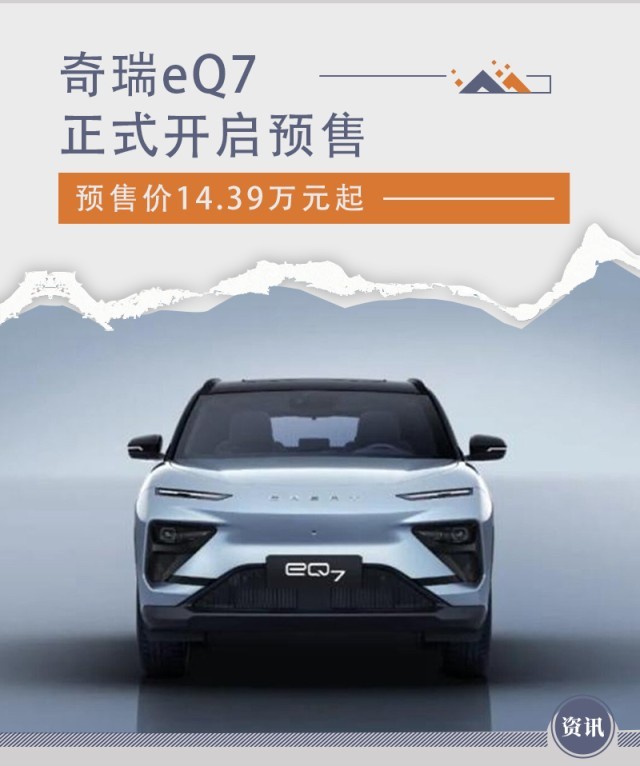 網通社從官方獲悉,基于中國首個鋁基輕量化平臺打造的首款車型奇瑞eQ7正式開啟預售,共推出3款車型,預售價14.39萬元-16.39萬元。