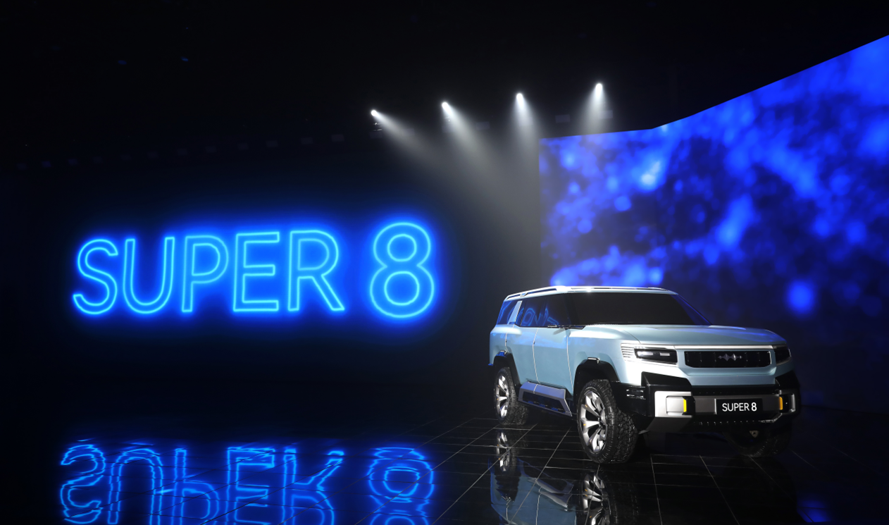 豹8車型的概念車SUPER 8,則展示了方程豹對硬派SUV的未來探索。SUPER 8在設(shè)計上不再拘泥于傳統(tǒng)的方盒子設(shè)計,而是從科幻的未來戰(zhàn)場獲取靈感,將賽博工業(yè)美學(xué)與肌肉感相融合,營造出強壯、寬大的體量和高級、純粹的車身形面;咬合式鎖扣設(shè)計環(huán)繞整車,體現(xiàn)了底盤與車身的上下分體式連接,又展現(xiàn)出極強的結(jié)合性、穩(wěn)固性與保護(hù)感,讓用戶自信馳騁、自由穿越、自在征服。