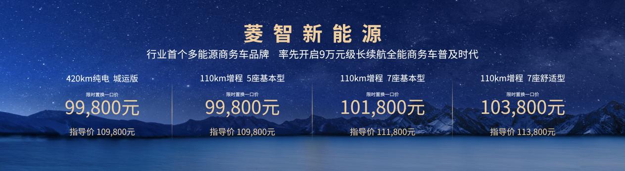 發(fā)布會(huì)上,菱智家族正式發(fā)布全新新能源產(chǎn)品矩陣,涵蓋純電、增程雙技術(shù)路線版本。其中,菱智新能源420km純電城運(yùn)版,售價(jià)為10.98萬(wàn)元,限時(shí)置換一口價(jià)9.98萬(wàn)元;菱智新能源110km增程版,售價(jià)為10.98-11.38萬(wàn)元,限時(shí)置換一口價(jià)9.98-10.38萬(wàn)元。2025年6月30日前訂車的首批客戶贈(zèng)送價(jià)值1500元的10寸液晶大屏,以及對(duì)行駛里程超過(guò)10萬(wàn)公里的車輛,贈(zèng)送基礎(chǔ)保養(yǎng)1次,助力中小微創(chuàng)業(yè)者跑出“創(chuàng)富加速度”。