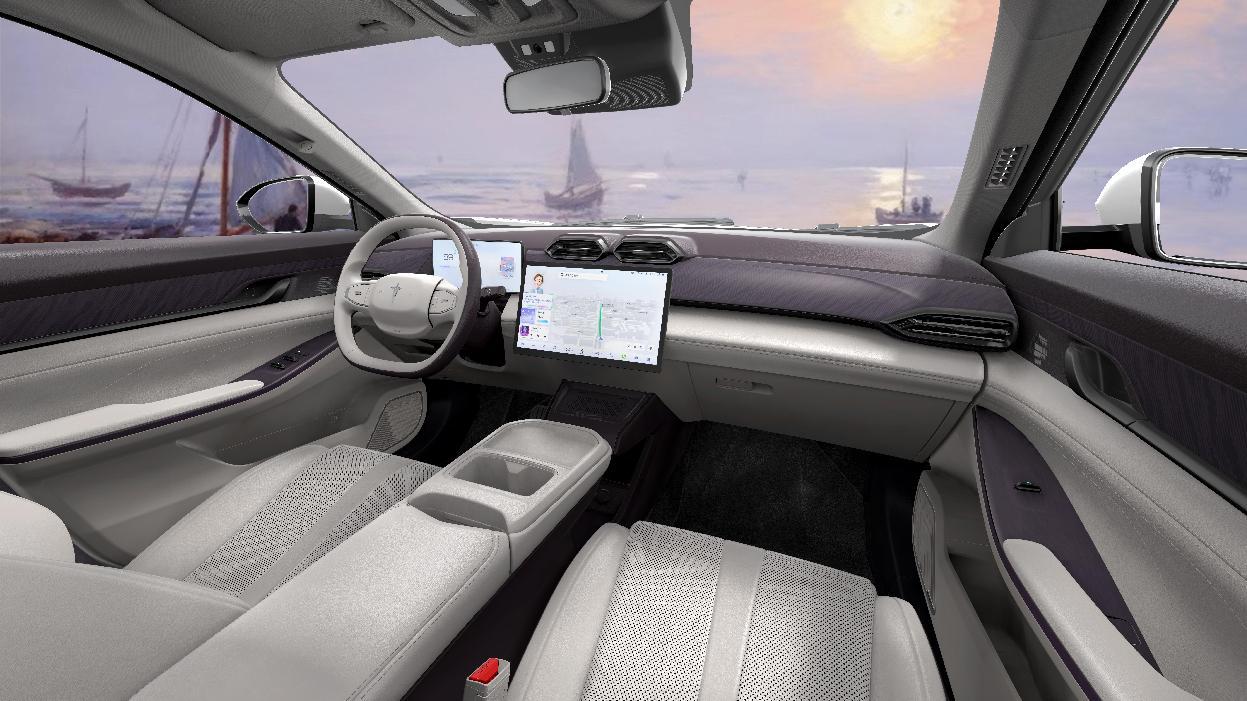 示界06以輕法式美學(xué)為設(shè)計(jì)基調(diào)。外觀采用鋒銳自由流線造型,琴弓弦月尾燈靈感源自小提琴弓造型,通過(guò)曲面轉(zhuǎn)折與立體光效,勾勒出如交響樂(lè)章般的光影韻律。車內(nèi)則以日出印象為靈感,營(yíng)造溫暖、松弛、充滿生活儀式感的視覺(jué)體驗(yàn)。標(biāo)配高通驍龍8155車規(guī)級(jí)芯片、電動(dòng)可開(kāi)啟全景天窗、主駕座椅加熱通風(fēng)與記憶功能,擁有同級(jí)領(lǐng)先的NVH靜音水平,85%超軟PVC軟觸包覆,采用高溫粒子雙重烘烤工藝,TVOC釋放量?jī)?yōu)于國(guó)標(biāo),全方位護(hù)航駕乘健康,滿足每一位駕乘者的舒適體驗(yàn)。