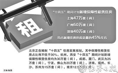 據(jù)了解,“十四五”期間,上海計(jì)劃新增保障性租賃住房47萬(wàn)套(間)、廣州計(jì)劃新增60萬(wàn)套(間)、深圳計(jì)劃新增40萬(wàn)套(間),均占新增住房供應(yīng)總量的45%左右。北京正在編制“十四五”住房發(fā)展規(guī)劃,其中保障性租賃住房占比將不低于30%。杭州、西安“十四五”期間計(jì)劃新增保障性租賃住房均為30萬(wàn)套(間),成都、廈門(mén)、武漢為25萬(wàn)套(間),寧波、佛山為20萬(wàn)套(間),濟(jì)南、福州、長(zhǎng)沙、蘇州為15萬(wàn)套(間),南京12.5萬(wàn)套(間)。