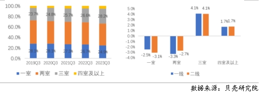 三、2023年三季度租賃住房成交結構變化