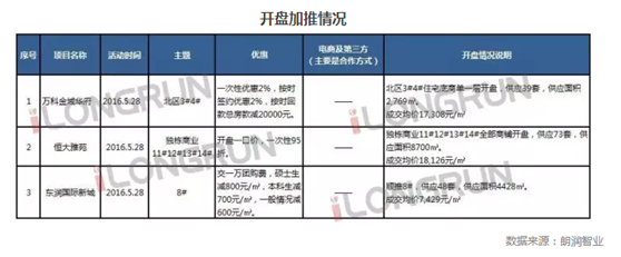 開盤加推情況 2016年5月第四周(5.23—5.29),本周有三個(gè)項(xiàng)目開盤、加推。