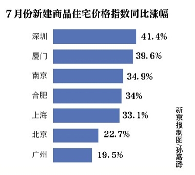 國家統(tǒng)計局數據顯示:7月份廈門新建商品住宅價格指數較上月環(huán)比增長4.6%,較去年同比漲幅達39.6%。