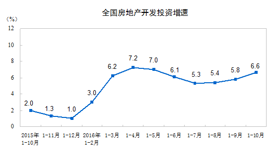 1-10月房地產(chǎn)開發(fā)同比增長(zhǎng)6.6%