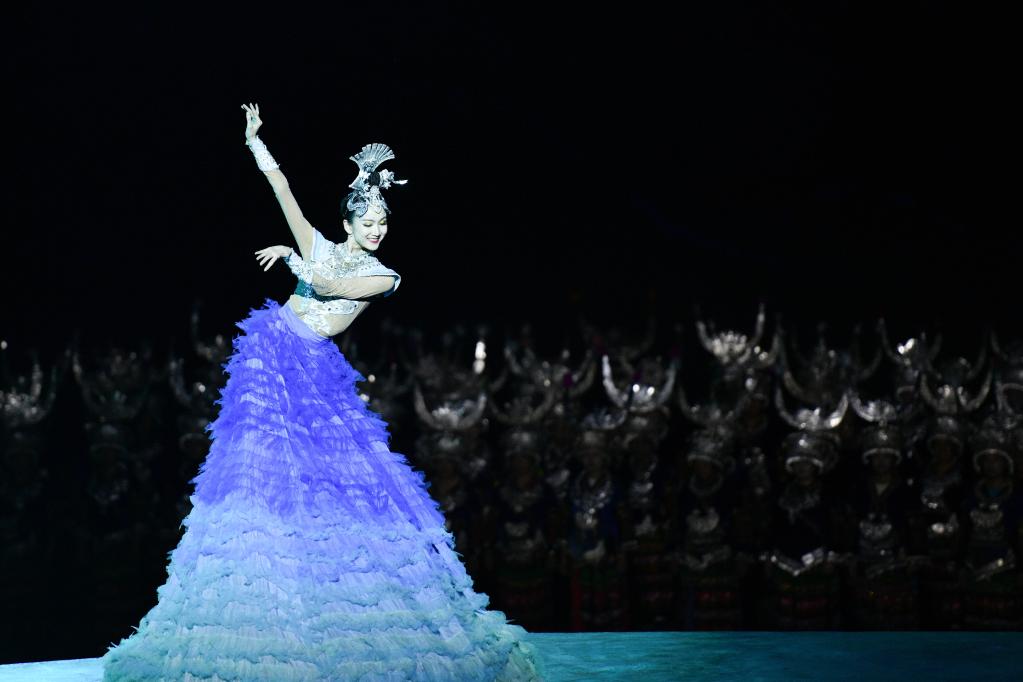 9月20日,演員在貴州省雷山縣大塘鎮(zhèn)表演苗族歌舞詩(shī)劇《仰歐?!?。新華社發(fā)(楊武魁攝)
