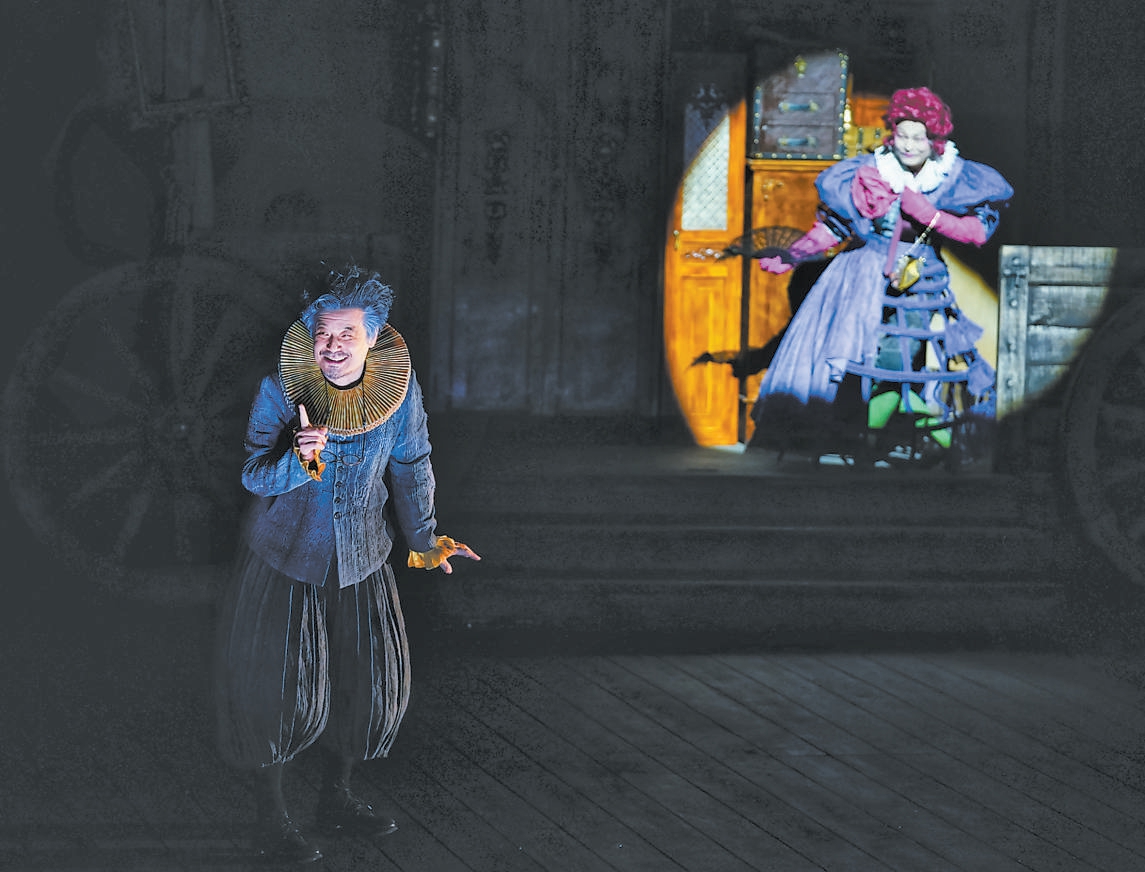 《慳吝人》劇照,圖中為傅迦飾演的阿巴貢。 本報記者 方非攝
