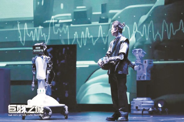 這是國內(nèi)首部機器人戲劇《巨物之城》的演出現(xiàn)場。演員與機器人一同完成了80分鐘的表演,謝幕后,臺下觀眾涌上舞臺,爭相與“堂吉訶德”“麒麟臂”“嵐”等機器人合影、問好。機器人——這個在日常生活中還頗為“遙遠”的形象,第一次以情感表達者的身份,走近了普通觀眾。