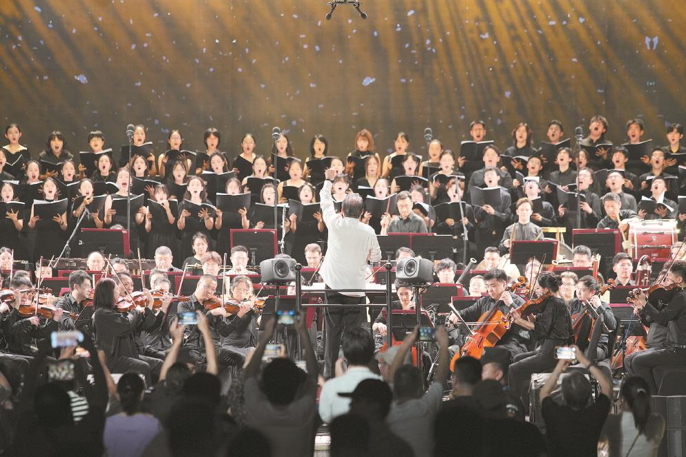 在音樂總監(jiān)余隆執(zhí)棒下,上海交響樂團(tuán)攜手回聲節(jié)日合唱團(tuán)為2025上海夏季音樂節(jié)畫上句點(diǎn)。 沈超凱 攝