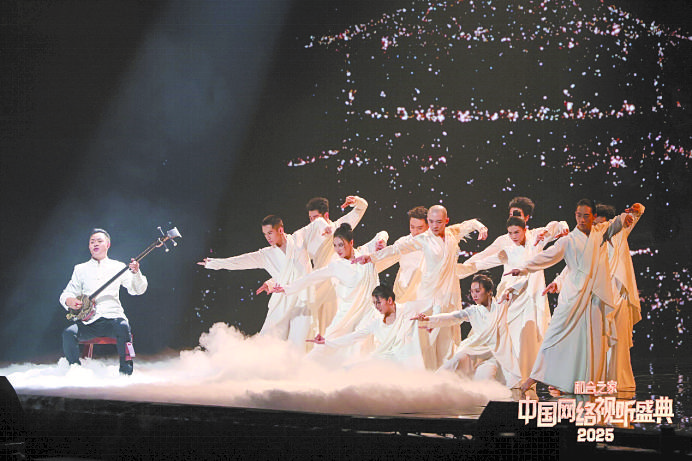 “眾盼平安成此塔,天命護(hù)佑守人間。”《塔》的演繹從青年演員裘繼戎的一句念白開(kāi)始。在中國(guó)傳統(tǒng)文化中,“塔”是力量和向上追求的象征。通過(guò)“尋塔、現(xiàn)塔、見(jiàn)塔、守塔、登塔”等篇章,《塔》表達(dá)了對(duì)文物保護(hù)和文明傳承的赤子之心,它融合陜北說(shuō)書(shū)、民樂(lè)、電子等音樂(lè)元素,由國(guó)風(fēng)表演者裘繼戎、熊竹英、者來(lái)女、戴荃、“唐伯虎Annie”,以及中國(guó)廣播藝術(shù)團(tuán)的藝術(shù)家們共同演繹“天命人”與“塔”的故事。