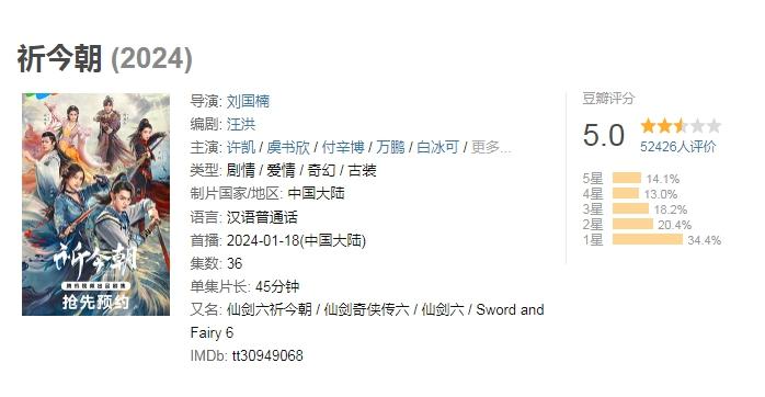有意思的是,數量上來了,有些仙俠劇的質量卻沒跟上。截至目前,相較于早前“仙劍一”與“仙劍三”的高評分,《千古玦塵》在豆瓣只拿到了5.5分,《祈今朝》是5分,“仙劍四”只有4.3分。