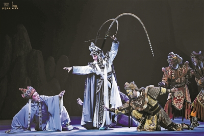 就筆者的理解,讓孫悟空、唐僧、白骨精、金蟾怪四個角色戲份更加平衡的做法,是為了能夠讓每位演員都獲得發(fā)揮的空間,這在戲曲表演傳統(tǒng)中本來不錯。而且?guī)孜欢际菢O好的演員,尤其金蟾怪在本劇中貢獻(xiàn)了一等一的表演。但是白骨精的形象、性格仍然不出傳統(tǒng),人物一登場,唱念上簡要地自報家門、交代背景就可以了,若鋪墊過多,唱詞顯得堆砌,無益于人物性格的塑造和展開。