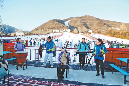 北京民族樂(lè)團(tuán)“空降”軍都山滑雪場(chǎng)。