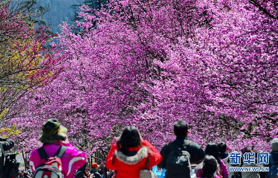 2月29日,游客在武陵農(nóng)場賞花。初春的臺灣,氣溫回升,位于海拔1700多米的臺中武陵農(nóng)場,漫山遍野的櫻花競相開放,美不勝收,吸引了四面八方的游客前來觀賞。 新華社記者張國俊 攝