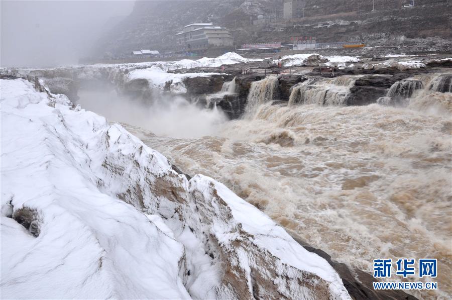3月9日,一名游客在山西吉縣拍攝飛雪中的黃河壺口瀑布。當(dāng)日,受倒春寒天氣影響,位于山西吉縣和陜西宜川縣交界的黃河壺口瀑布迎來(lái)雨雪天氣,奔流的壺口瀑布在白雪的映襯下更顯壯美。新華社發(fā)(呂桂明 攝)