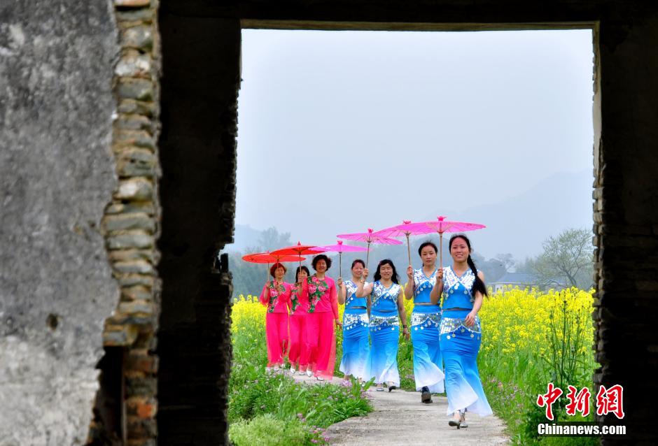 3月20日,江西省德興市海口鎮(zhèn)杜村婦女在田間花?!白咝恪?。當日,江西德興市??阪?zhèn)杜村一批家庭婦女以千畝油菜花海為舞臺,展示自己的才藝形象,希望宣傳家鄉(xiāng)的自然生態(tài)與人文歷史,擴大旅游知名度和影響力。德興市海口鎮(zhèn)杜村交通便利,自然風光優(yōu)美,村內有歷史古跡和名木古樹。 胡敦煌 攝
