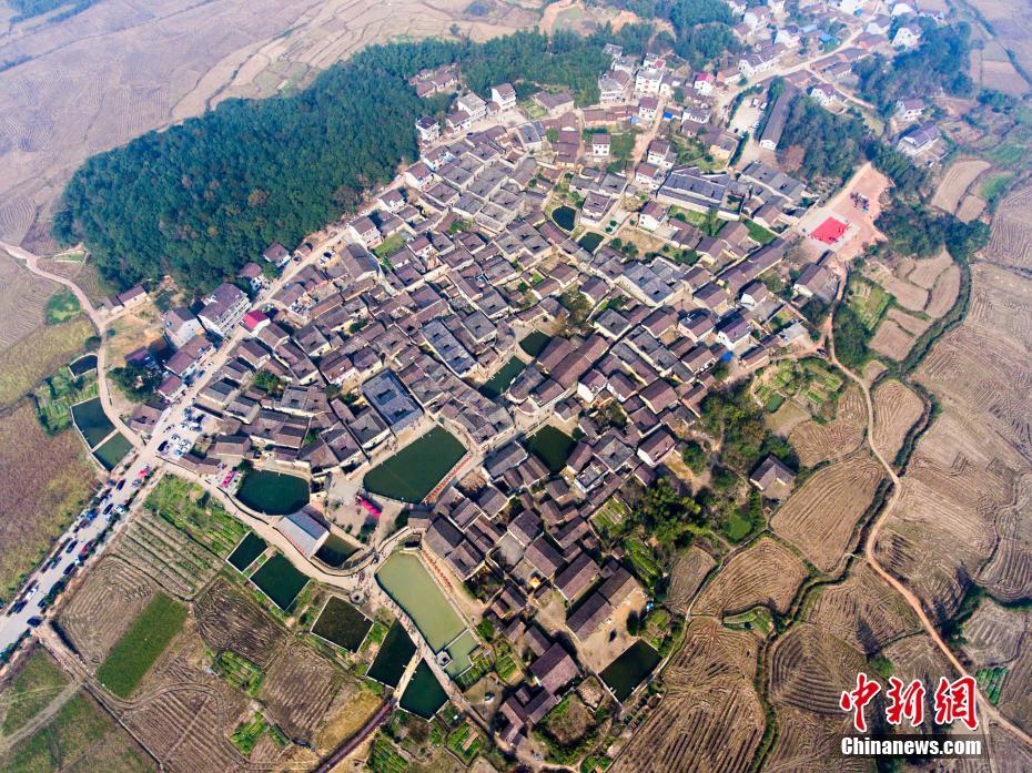 12月10日,航拍位于江西金溪縣有著600多年歷史的中國(guó)歷史文化名村、中國(guó)傳統(tǒng)村落竹橋古村,俯瞰全村,形似一柄巨扇。該村現(xiàn)保存有明代所建民居8幢,明代祠堂1幢,其余為清代建筑,青磚灰瓦,樸實(shí)素雅,為贛派建筑最典型的代表。村前溪水長(zhǎng)流,良田萬(wàn)頃,村后茂林修竹,鳥鳴樹幽,身歷其境,如入畫中。傅建斌 攝