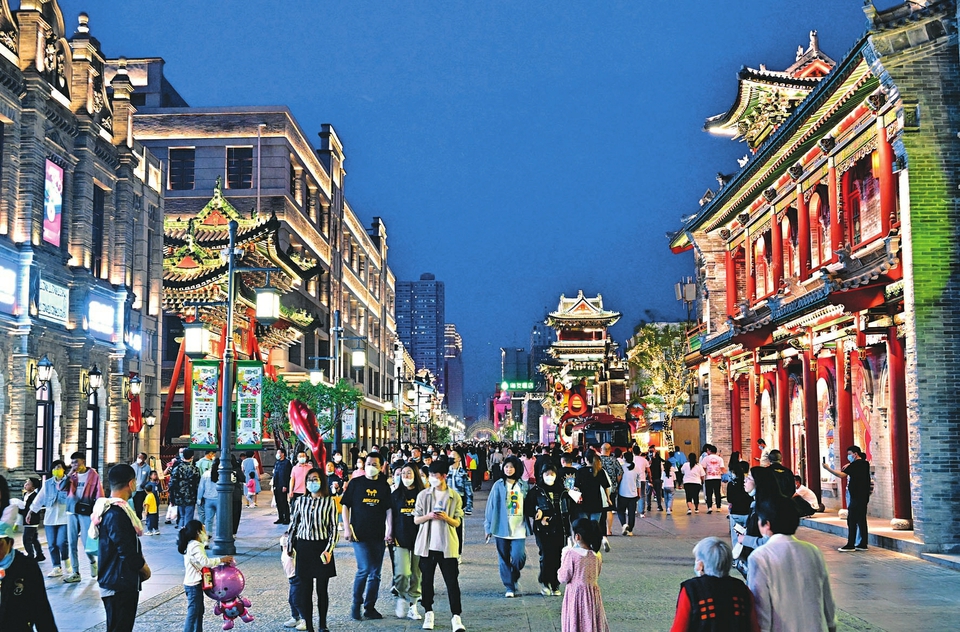 5月15日夜,華燈初上,人們愜意地在太原鐘樓街徜徉。每逢夜幕降臨,鐘樓街上人來人往,青磚綴彩,古風悠然,飛檐翹角處霓虹耀閃,古老與時尚在這里交融,歷史與現(xiàn)代在此地“重逢”,五光十色的鐘樓燈光秀,令人目不暇接、流連忘返。