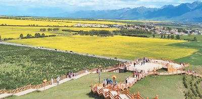 7月,青海省門源回族自治縣油菜花綻放,一蓬蓬、一簇簇迎風(fēng)舞動(dòng),宛如金色的海洋。付 利攝