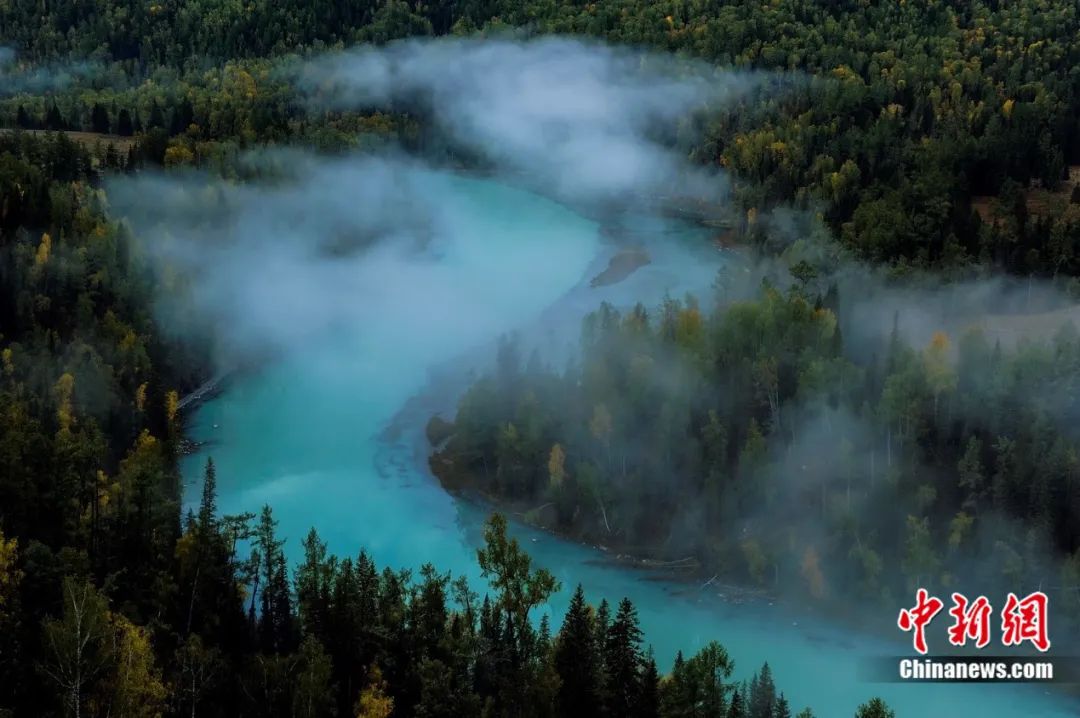 喀納斯湖又像一面白色的水晶鏡