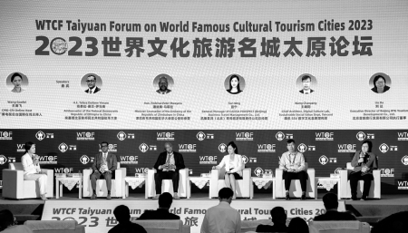 太原論壇設(shè)置“市長談世界文旅名城建設(shè)”主旨發(fā)言、《旅游城市文化品牌建設(shè)與形象傳播報告》發(fā)布、“文明交流互鑒與世界文旅名城建設(shè)”特別論壇、“文化品牌建設(shè)與文旅產(chǎn)業(yè)發(fā)展”主題發(fā)言、旅游交易洽談會等活動。來自國內(nèi)外的文旅大咖圍繞文旅產(chǎn)業(yè)發(fā)展進(jìn)行探討,為提高城市旅游經(jīng)濟(jì),打造城市形象,建設(shè)各美其美、美美與共的旅游城市發(fā)表真知灼見?,F(xiàn)場,太原市委副書記、市長張新偉與部分嘉賓圍繞“市長談國際文旅名城建設(shè)”和“文明交流互鑒與世界文旅名城建設(shè)”主題發(fā)言。