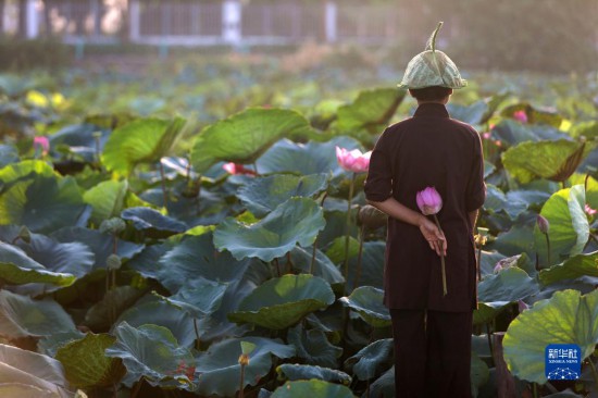 2020年7月15日,一名市民在越南首都河內(nèi)西湖畔遠(yuǎn)眺荷塘。西湖位于河內(nèi)市西北部,是河內(nèi)的著名旅游勝地。