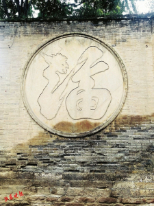 “龍鶴?!贝u雕影壁位于張壁古堡賈家巷,是官紳張禮維故居的一部分,建于清朝乾隆年間,至今已有二百多年歷史。影壁上的這個(gè)“?!弊郑鸸P狂草灑脫俊逸,轉(zhuǎn)承行書(shū)剛勁有力,而落筆于“田”字時(shí)則急轉(zhuǎn)為楷端莊方正。福字集三種書(shū)法為一體,凌而不亂渾然天成。