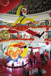 1.在解放路萬(wàn)達(dá)廣場(chǎng)內(nèi),兩個(gè)巨大的1961年版《大鬧天宮》美猴王造型吸引眾多市民打卡留念。