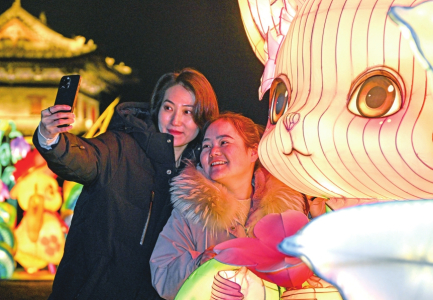 造型別致的花燈,吸引游客紛紛掏出手機(jī)留影。