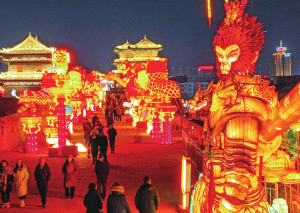 夜放花千樹(shù),吹落星如雨,是大同現(xiàn)代夜景的詩(shī)意寫(xiě)照。從2013年春節(jié)起,至今成功舉辦九屆的大同古都燈會(huì),已成為大同的傳統(tǒng)民俗活動(dòng)之一。今年的大同古都燈會(huì)從形式到內(nèi)涵都有了全面的創(chuàng)新升級(jí),在文化感、藝術(shù)性和故事性上彰顯出了新春節(jié)慶、地域民俗以及城市時(shí)尚的代表元素。燈會(huì)通過(guò)新穎的手法將“形、色、聲、光、動(dòng)”融為一體,圍繞生肖文化、祈福文化、特色非遺、傳統(tǒng)美食、大同知名文旅內(nèi)容等,設(shè)立了“古城春韻區(qū)”“悟空嘉年華”“炫彩賀春區(qū)”“魅力大同區(qū)”“年韻薈萃區(qū)”“年趣童真區(qū)”“喜慶盛世區(qū)”“王者榮耀區(qū)”“吉祥福佑區(qū)”九大主題燈區(qū),精心打造集民俗燈彩、演出、互動(dòng)、體驗(yàn)、市集為一體的新春燈會(huì),開(kāi)啟了一場(chǎng)千年古韻與現(xiàn)代風(fēng)華的交融之旅,將“大同年·大不同”的這份喜慶歡騰、溫馨浪漫,傾情灑向流連在斑斕燈海的游人們。